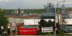 No Harbour for War and the Halifax Peace Coalition protest presence of three German warships in Halifax Harbour